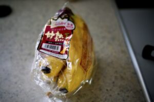 すると、ありました・・・。一房が119円のもの(こちらはバナナが未だ緑色ぽっくて食べ頃になるまでには数日置いてくださいとの張り紙が)、我々が購入したのは1房が198円のバナナの方でした。バナナが無性に食べたかったので2房購入。
