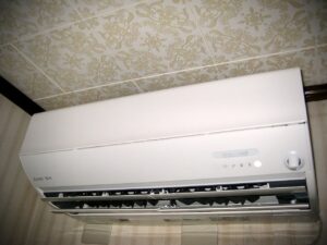 部屋に取り付けが終了した新たなエアコン本体。以前の機種よりも部屋がより暖かくなった感じがする。